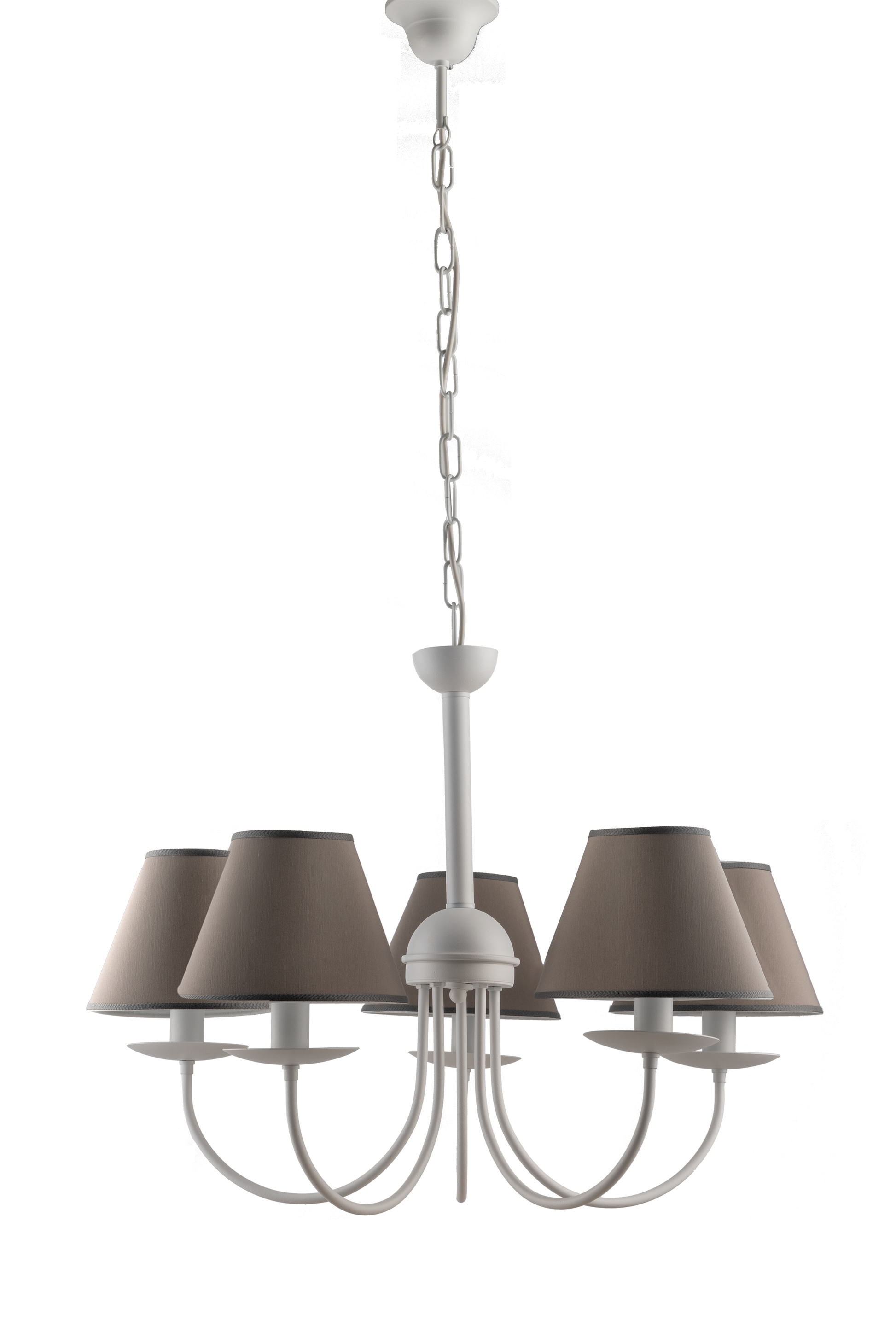 5-Light Shabby Style Chandelier – White Epoxy Powder Coated Metal with Cone Lampshade Diameter 20×10 cm Height 14 Chinette Fabric Coupled on Anti-Static PVC