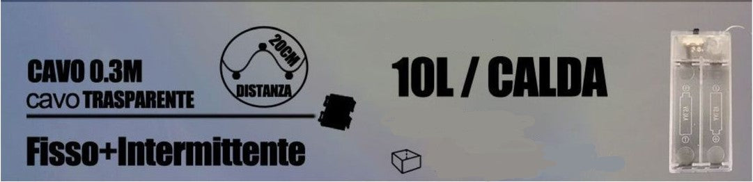 Microled battery chain with flexible metal cable. It must be powered by 1 AG23 LED battery and is 1 meter long. Ideal result for interior installations and decorations but also for creating original Christmas or wedding placeholders
