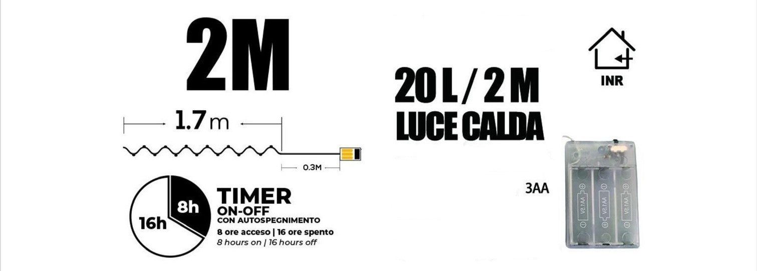 Microled battery chain with flexible metal cable. It must be powered by 1 AG23 LED battery and is 1 meter long. Ideal result for interior installations and decorations but also for creating original Christmas or wedding placeholders