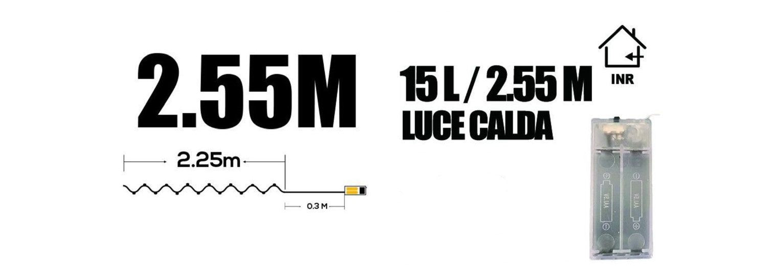 Microled battery chain with flexible metal cable. It must be powered by 1 AG23 LED battery and is 1 meter long. Ideal result for interior installations and decorations but also for creating original Christmas or wedding placeholders